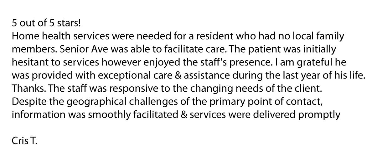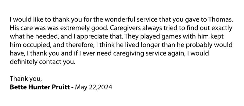 And, thank YOU for your help and caring. You and your caregivers were true gifts to us.