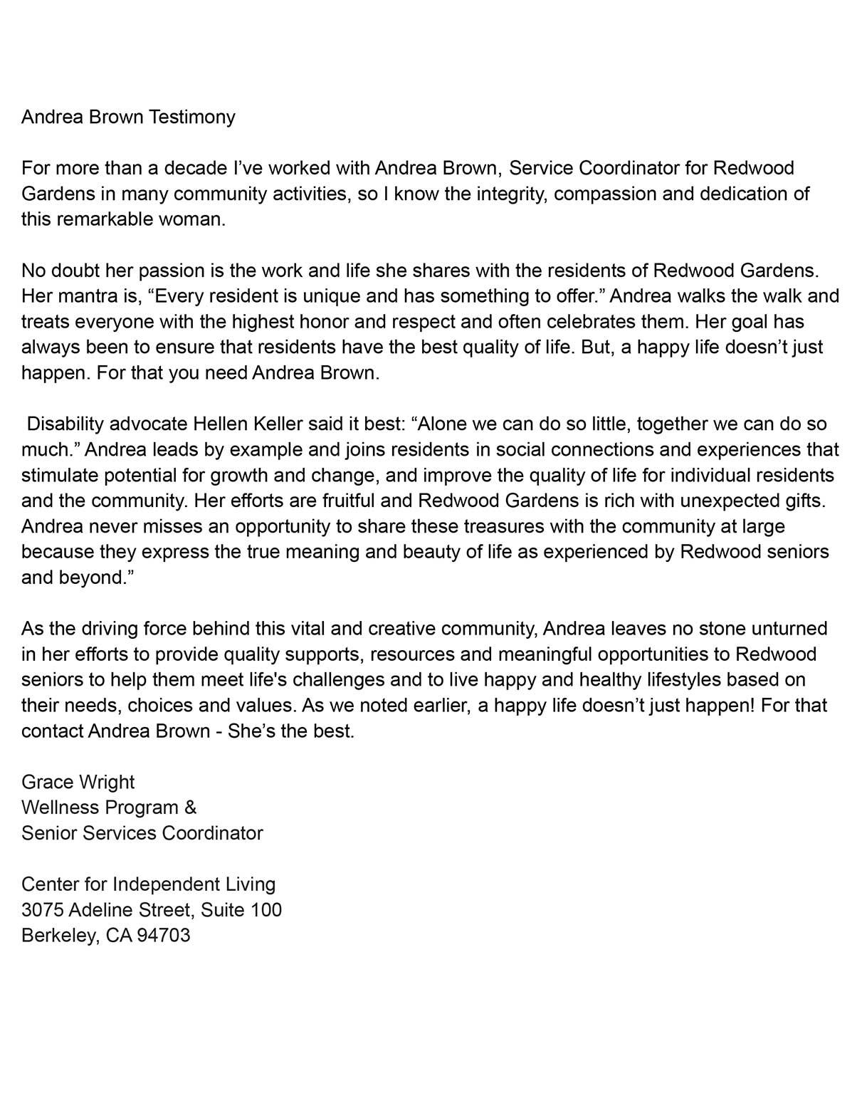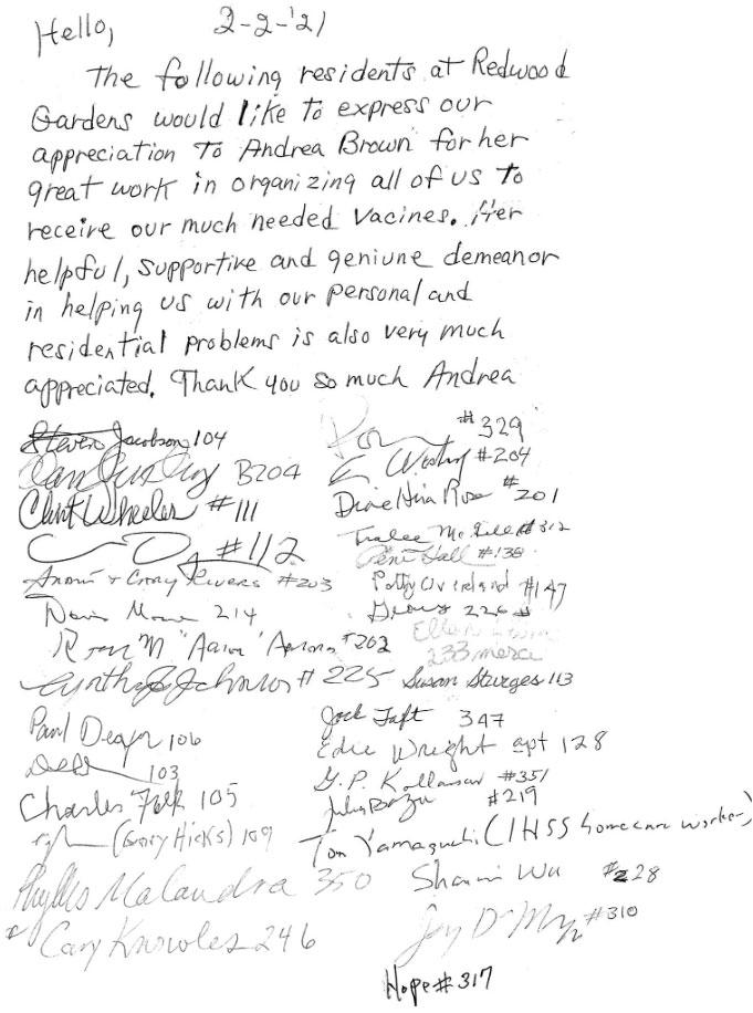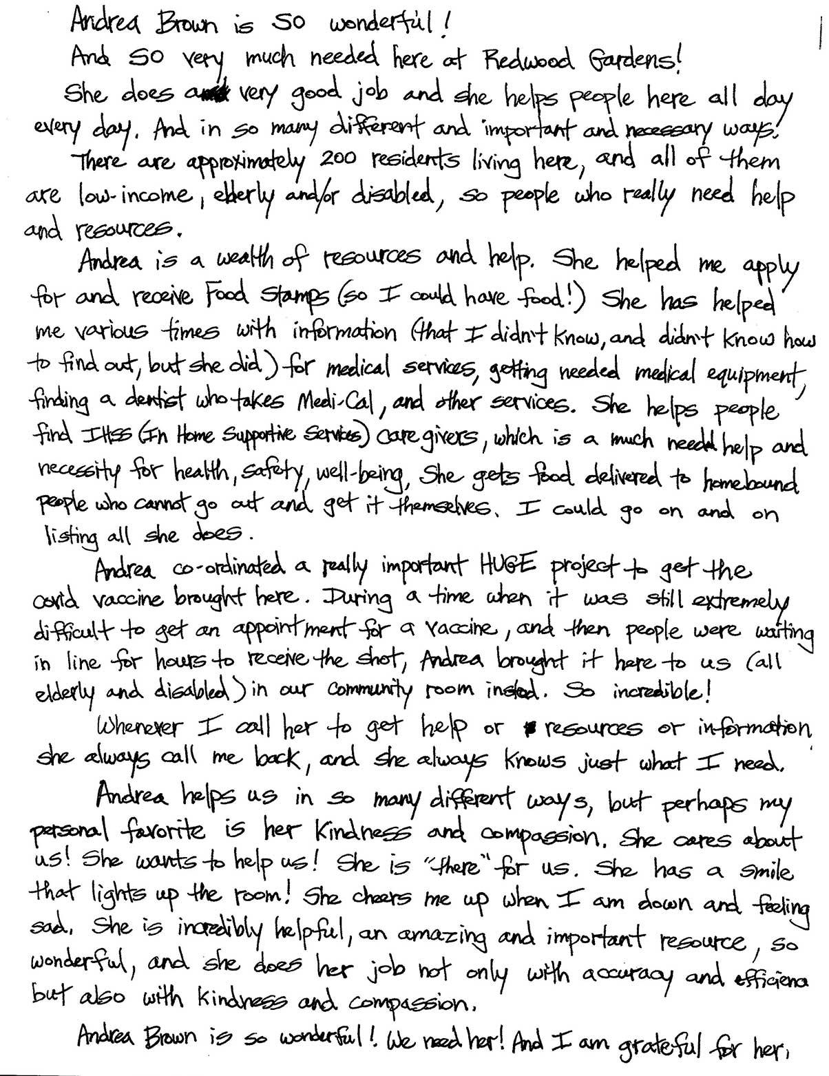 Andrea Brown was very helpful in connecting our lost family members with his Michigan and North Carolina relatives, at his request. Herman James Wyngarden was my father's cousin, a Korean vet, who wanted to reconnect with his family. Andrea found Wyngaardens on social media and that let to.several shared video calls with HJW before his death. Andrea then assisted in helping us address HJW's request to be buried next to his father and.mother in Michigan,.making all of the California arrangements with the medical examiner and funeral home. HJW got his dieing wish and is now buried in western Michigan. We could not have done this without Andrea.